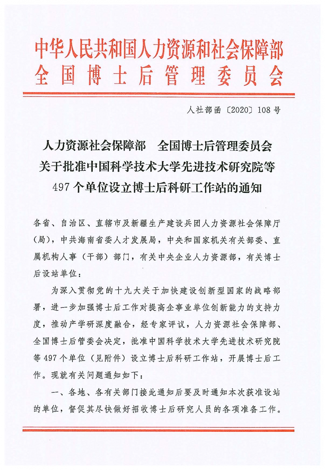 2020年11月27日,根據人力資源和社會保障部、全國博士后管理委員會《關于批準中國科學技術大學先進技術研究院等497個單位設立博士后科研工作站的通知》(人社部函〔2020〕108號),廣東博宇集團有限公司獲批設立博士后科研工作站。